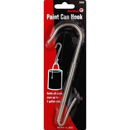 Holds all paint cans up to 2 gallon size. This paint can hook features a wrap-around spring and superior construction to securely grasp ladders. And keep paint can within reach.