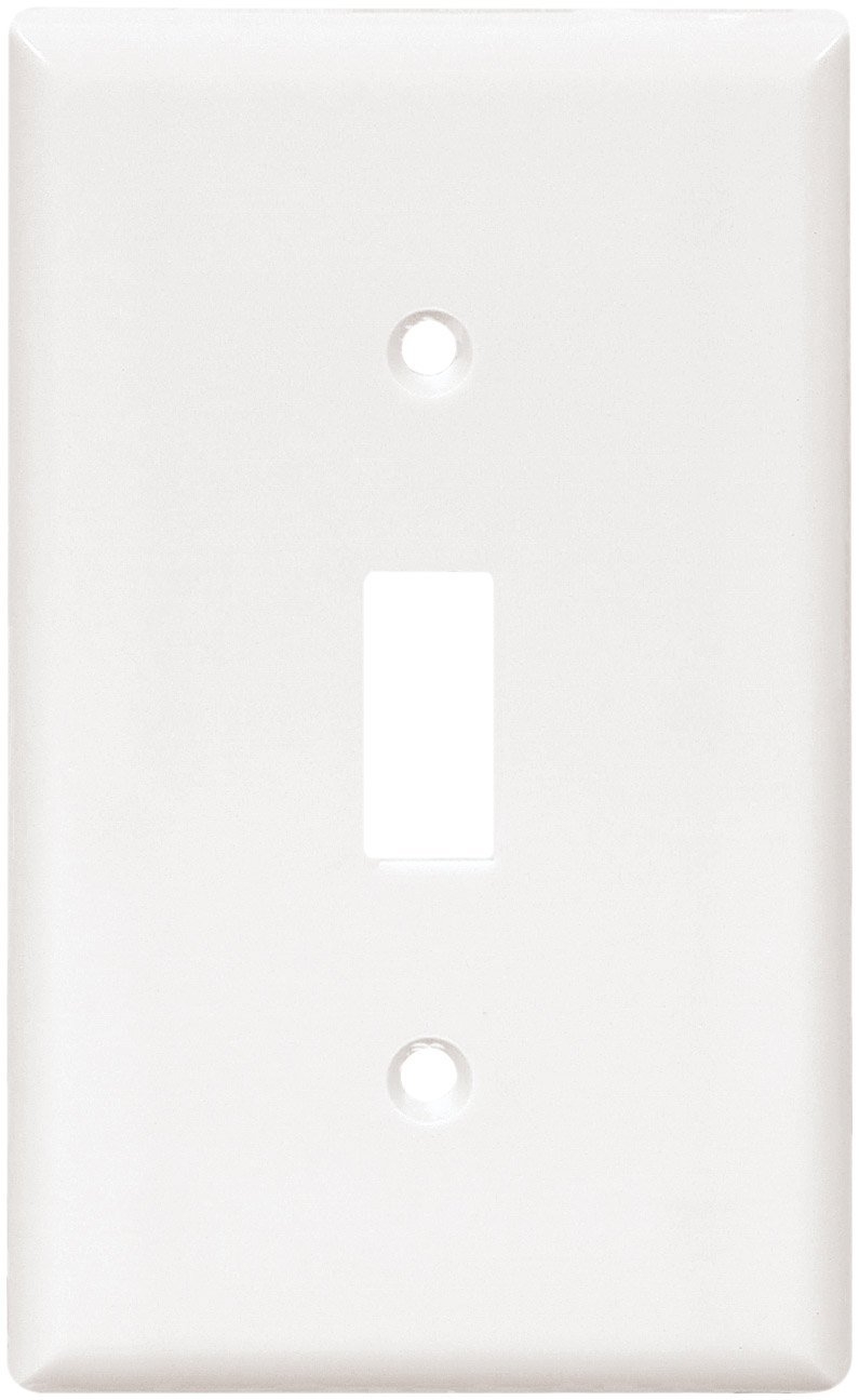 1-Gang standard size toggle wallplate is made of thermoset material. Exclusive timesaving screw-catch feature that holds mounting screws captive and simplifies installation. Matching mounting screws provided. Extensive line of non-flammable thermoset plates provides flush-fitting, warp resistant performance. cULus listed to UL514C, file no. E33216, certified to CSA C22.2, no. 42.1. Flammability: Meets UL94 requirements, 5-volt rated. Temperature rating -40-degree celsius to 65-degree celsius. 1-3/8-Inch First gang to edge. NAFTA compliant. Available in white color.