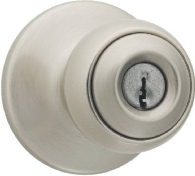 Kwikset Security, Satin Nickel Finish, Polo Entry Knob Lockset, Grade 3, Round Corner Adjustable Steel Latch Fits Both 2-3/8" & 2-3/4" Backsets, Comes With Snap On Metal Collar For Drive In, Round Corner Strike, Keyed Alike In Sets Of 6, Lifetime Mechanical Warranty, 5 Year Finish Warranty, Clear Pack.