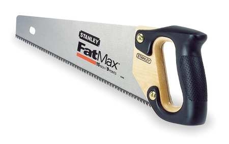 This FatMax Saw has a 15 in. blade length and 9-points per inch. SharpTooth saw technology cuts 50% faster than conventional saws. Induction hardened teeth stay sharp 3 to 5 times longer than standard teeth. Ideal for cutting various types of wood and plastic. Blade is +15% thicker than conventional hand saws for straighter cuts and to reduce bending. Has an ergonomically designed handle for better grip and comfort. Handle is approximately 60% thicker than those of conventional hand saws. Patented design.