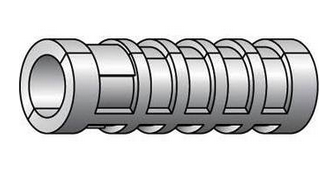 This lag screw expansion shield is a die cast zinc alloy expansion shield for anchoring lag screws in a variety of base materials including concrete, concrete block, brick and mortar joints. Radial ribs provide additional holding power in softer material.