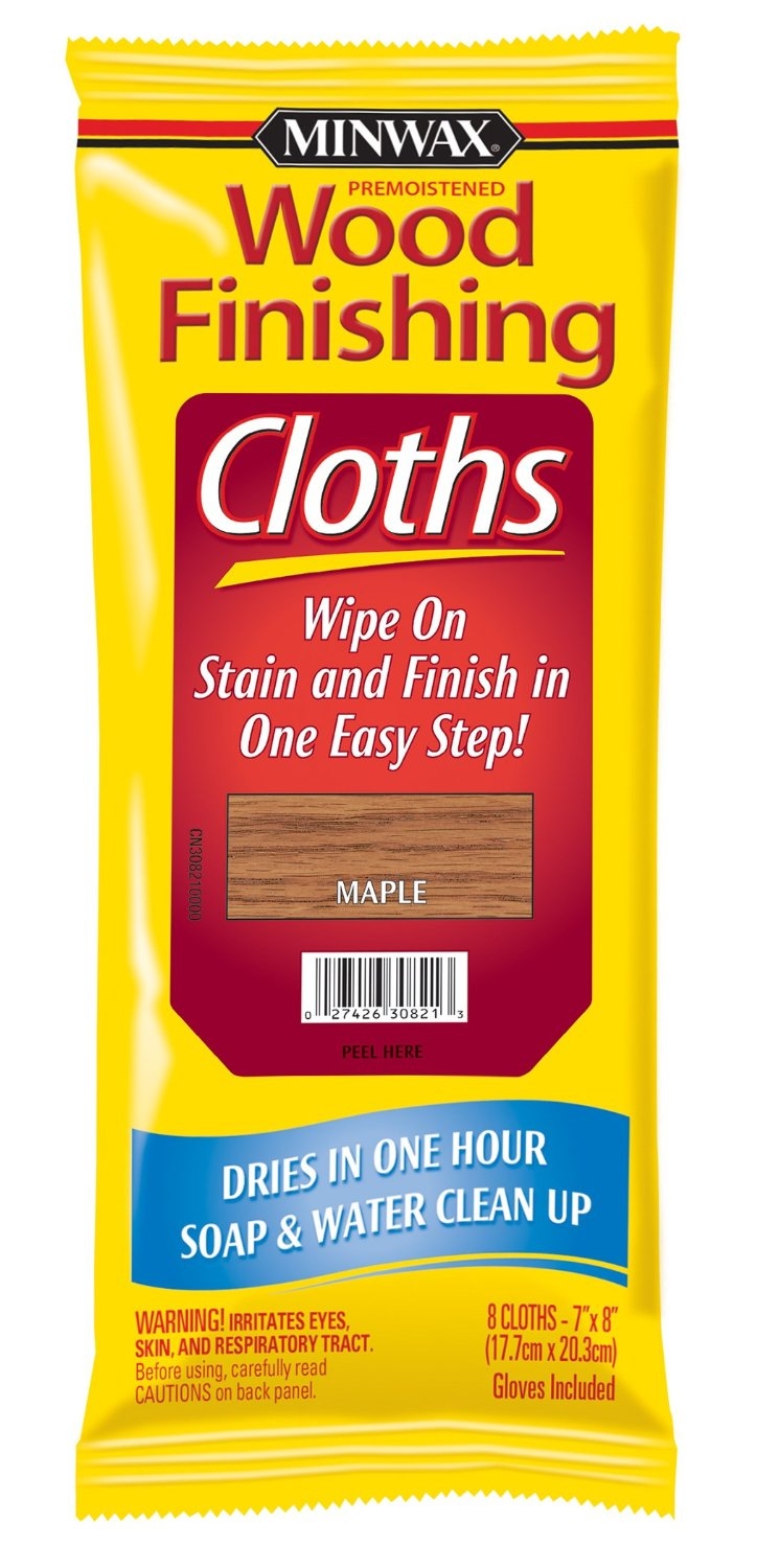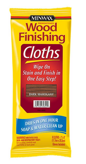 Minwax Remoistened Wood finishing Cloths allow you to wipe on stain and finish in one easy step. Great for both the novice and experienced wood finishers looking for a fast, easy way to finish their project.