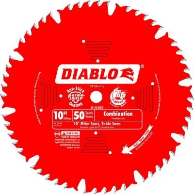 The Diablo 10 in. 50 tooth combination circular saw blade features TiCo high-density carbide construction to provide a long-lasting blade life. Laser-cut stabilizer vents help limit vibrations for precise cutting. PermaSHIELD nonstick coating helps protect the blade from heat, gumming and corrosion.