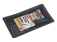 For All Paints, Enamels, Primers And Adhesives. Includes RR302 Pro/Doo-Z 4-1/2" X 3/8" 2-Pack Roller Cover; RR013 Jumbo-Koter 14" Frame And BR403 Jumbo-Koter Black 1/2 Quart Capacity 4-1/2" PET Tray.