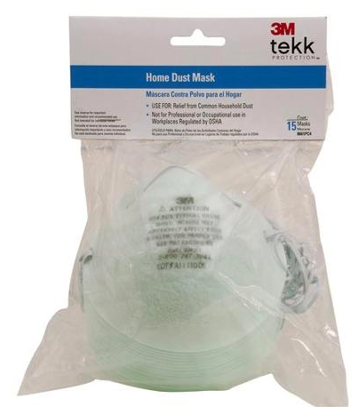 3M TEKK Protection Home Dust Mask, 15/pack 3 packs/inner, 4 inners/case. 3M(TM) TEKK Protection(TM) Home Dust Mask, used for relief from non-harmful household dust, offers homeowners an option in helping reduce the inhalation of common household dusts, dirt, pollen and grass clippings. The patented filter media and contour-fit, soft metal nosepiece adjusts closely over the bridge of the nose making it comfortable and easy to use.
