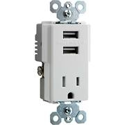 Plug in to the future with the new Legrand TradeMaster Tamper-Resistant Combo Receptacle/USB Charger. Designed to replace conventional duplex receptacles, this powerful 2.1-amp USB port allows users to plug their mobile phones, tablets and other electronic devices into the wall without the need for a bulky AC adapter. With its compact size, the P USB Charger with Tamper-Resistant Receptacle installs easily and accepts standard wall plates. Meanwhile, its 15-amp receptacle features the patented P Tamper-Resistant shutter system, which keeps everybody safe.