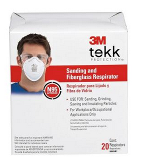 The 3M TEKK Protection Sanding and Fiberglass Respirator provides at least 95% filter efficiency against solid and liquid particles that do not contain oil. 3M TEKK Protection Disposable Respirators are designed for exceptional comfort and ease of use. Choose the 3M TEKK Protection Sanding and Fiberglass Respirator because it helps provide relief from non-harmful dust particles, helps protect against non-harmful dust particles, and is lightweight and comfortable to wear. Applications - Use for non-harmful dusts related to: Sanding, Grinding, Sawing, Certain insulating particles.