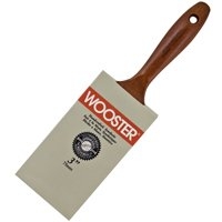 Gold nylon/sable polyester, chisel trim. Stiff formulation, substantial feel. Round rust-resistant steel ferrule. Walnut-finished wood handle.