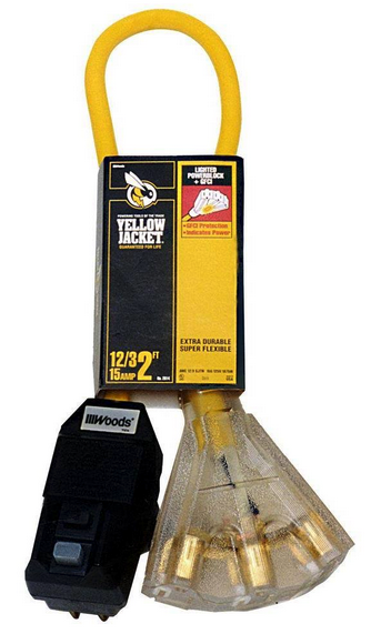 More flexible and abrasion resistant at any temperature than standard vinyl compounds or blue cold weather cords. Three outlets and right angle male plug with ground fault circuit interrupter. Manual test/reset buttons.
