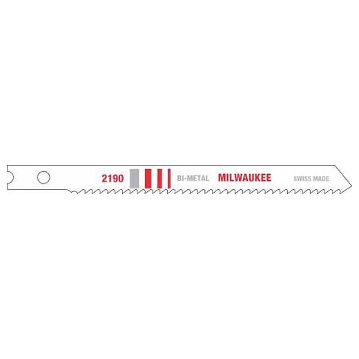 Get professional-grade performance and longer blade life with the Milwaukee® 3-5/8" 14 TPI Bi-Metal Jig Saw Blade (5-Pack). These heavy-duty blades last longer than high-speed steel or carbon blades, combining the strength to cut metal with the durability to withstand impacts without breaking. With Milwaukee’s attention to blade material, tooth shape and sharpness, the jig saw blades produce clean, fast cuts in metal over 1/4" thick. This blade has a universal tang and fits Milwaukee jig saw model 6256-6 and other popular brands.