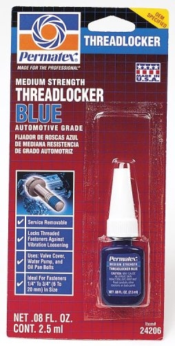 Permatex Medium Strength Threadlocker Blue Formula is an all-purpose threadlocker ideal for all nut and bolt applications 6mm to 20mm. Eliminating the need for stocking expensive lock nuts and lock washers, this threadlocker locks and seals while preventing parts loosening due to vibration. It also protects threads from corrosion and is removable with hand tools for easy disassembly. Applied as a liquid or gel, threadlockers are superior to conventional lock washers, nylon inserts, and other mechanical devices because they secure the entire fastener assembly against loosening from shock and vibration by filling the space between threaded metal parts, curing to form a tough, adhesive bond and seal. They also seal the threads against leakage, preventing rust and corrosion.