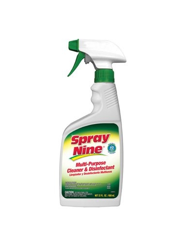 Permatex Spray Nine Multi-Purpose Cleaner and Disinfectant is a professional-strength cleaner/disinfectant to power off tough soils fast. Only one product necessary to effectively clean, degrease, disinfect, remove stains, control mold and mildew, and deodorize. Efficiently disinfects, killing bacteria and viruses in just 45 seconds. Suggested applications include equipment, tools, tires, vinyl and concrete floors, vinyl, stainless steel, painted metal, fiberglass, chrome, engines, plastic, enamel, rubber, walls & ceilings, concrete, sinks, toilet exteriors, showers/bathtubs and more.