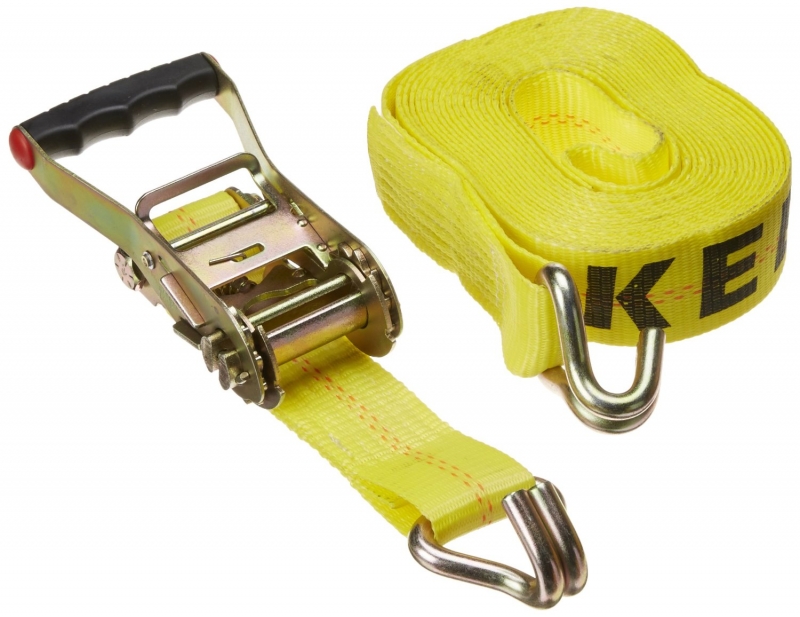 This Keeper ratcheting tie-down features J-hooks and has a 10,000lbs break strength. It provides the same performance as industrial ratcheting tie-downs on commecial vehicles.