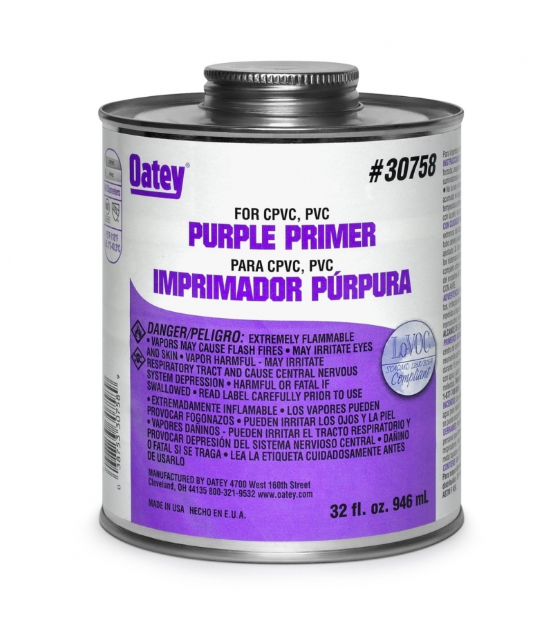 A purple tinted aggressive primer recommended for use on PVC and CPVC pipe and fittings, all schedules and diameters. Formulated to remove surface dirt, grease, and grime as well as soften the pipe surface to allow for a fast, secure, and permanent solvent weld. For use in areas where code calls for verification that a primer has been used. Recommended for all PVC and CPVC installations. NSF and UPC listed. Exceeds ASTM F 656.