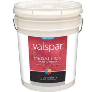 Exterior latex paint house paint"medallion" flat - house paint 5 gallon pail color=white Weather resistant. Soap and water clean up. Flows on easily for a smooth, even finish. Gives mildew resistant coating. May be used on wood, metal and masonry.