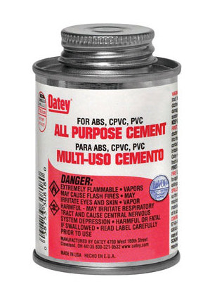 Medium-bodied milky clear cement for ABS, PVC, or CPVC up to 6" diameter. Recommended for pipe and fittings schedule 40 and schedule 80, potable water, pressure pipe, gas, conduit, and DWV. Recommended application temperature 40 degrees F to 110 degrees F. Meets performance requirements of ASTM D-2564, D-2235, F-493. Check local codes for acceptability of this product.