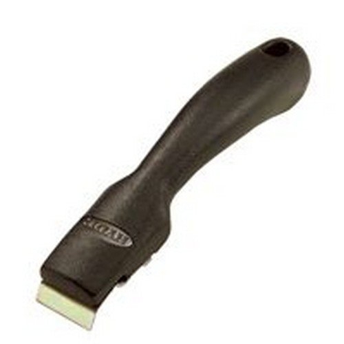 Angled, computer-designed solid polypropylene handles with hang hole are shaped to fit human hands, to provide extra leverage, and to keep knuckles safely away from work surface. Blade/surface angle for paint scraping efficiency. High-carbon steel blade with 2 scraping edges. Use No.11000 Hyde 2-edge 1" replacement blades for No.10500; No.11050 Hyde 1-1/2" for No.10510; and No.11100 Hyde 2-1/2" for No.10520.