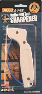 Sharpens Knives In Seconds, Even Serrated Knives, Cleavers, Axes, Machetes And Many Other Cutting Tools. Large Ergonomic Handle Fits Either Hand Safely And Securely. Full Length Finger Guard Protects Your Fingers. Sharpening Blades Are Diamond Honed Tungsten Carbide For Years Of Reliable Service. Will Not Rust And Can Be Cleaned With Soap And Water Or In The Dishwasher.