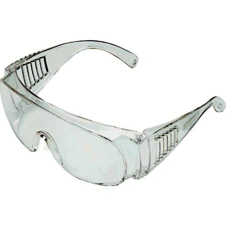 Lightweight unitary lens safety glasses. Optically correct poly carbonate lenses. Provides hours of comfortable protection. Contoured frame for greater peripheral vision. Accommodates any shape face. Clear frame color. Made with 100 percent virgin materials which improves the clarity of the material, as well as the strength. Used in applications such as power tool work sawing/drilling in metal or wood, hammering, painting or overhead work.