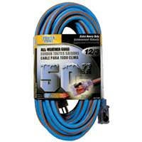 ALL-WEATHER BLUE WITH ORANGE STRIPE Lgth Ft=50 Amp/ Volt=15/125 Extreme temperature cord with lighted locking connector. Blue with orange stripe for visibility. Oil resistant, water resistant, flame retardant. Stays flexible down to -58 degrees Fahrenheit, stands up to 221 degrees Fahrenheit. 30 percent lighter than standard rubber cords.