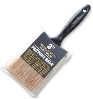 Flat gold polyester varnish brush with chisel trim for all latex or oil paints. Brass-plated steel ferrule and black solid plastic handle.