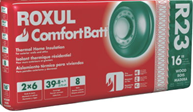 Roxul ComfortBatt™ is a stone wool insulation products for use in both new residential construction and renovations. This semi-rigid batt has a unique flexible edge designed to compress as the batt is inserted into walls, attics, ceiling and floor frames. The flexible edge springs back, expanding the batt against the frame studs to give a complete fill. ComfortBatt™ compensates for normal variations in stud centres caused by distortion or warping. The special flexible characteristic at the insulation edge ensures the expected R-value is achieved.