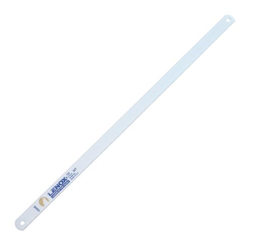American Saw's Lenox Hand Hacksaw Blades feature bi-metal construction, a spring steel back, a tooth hardness of Rc64-66, and an M-2 high speed steel cutting edge. These blades are shock and shatter resistant, have high heat resistance, and are virtually unbreakable. They are safer than solid high speed steel blades and outperform carbon steel up to 10 to 1. They provide a freer cutting action and smoother cut. This model has 32 teeth per-inch and measures 12 inches long by 1/2-inch wide.